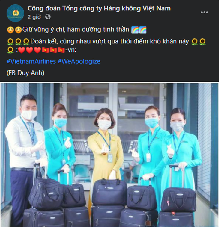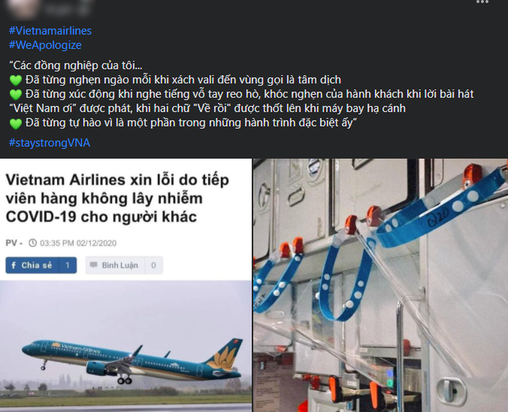 Vào tối cùng ngày, rất nhiều những bài viết của các tiếp viên hàng không và nhân viên đang làm việc tại Vietnam Airlines cũng đăng tải hashtag #WeApologize (Chúng tôi xin lỗi) lên Facebook để gửi lời xin lỗi đến cộng đồng, xã hội.