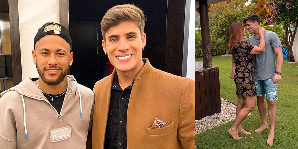 Ảnh trái: Neymar và Tiago Ramos. - Ảnh phải: Ramos tình tứ với bà Gonclaves - mẹ của Neymar.Cách đây vài tháng, mọi người sửng sốt khi bà Gonclaves - mẹ Neymar - công bố người tình Tiago Ramos, trẻ hơn tới 29 tuổi. Và càng sửng sốt hơn khi vài ngày sau đó, bà đuổi Ramos, 23 tuổi ra khỏi nhà, vì phát hiện ra giới tính thật của anh chàng người mẫu. Tuy nhiên, sau đó "gương vỡ lại lành", bà Gonclaves tiếp tục hạnh phúc dưới một mái nhà với Ramos, người thừa nhận bản thân là lưỡng tính.