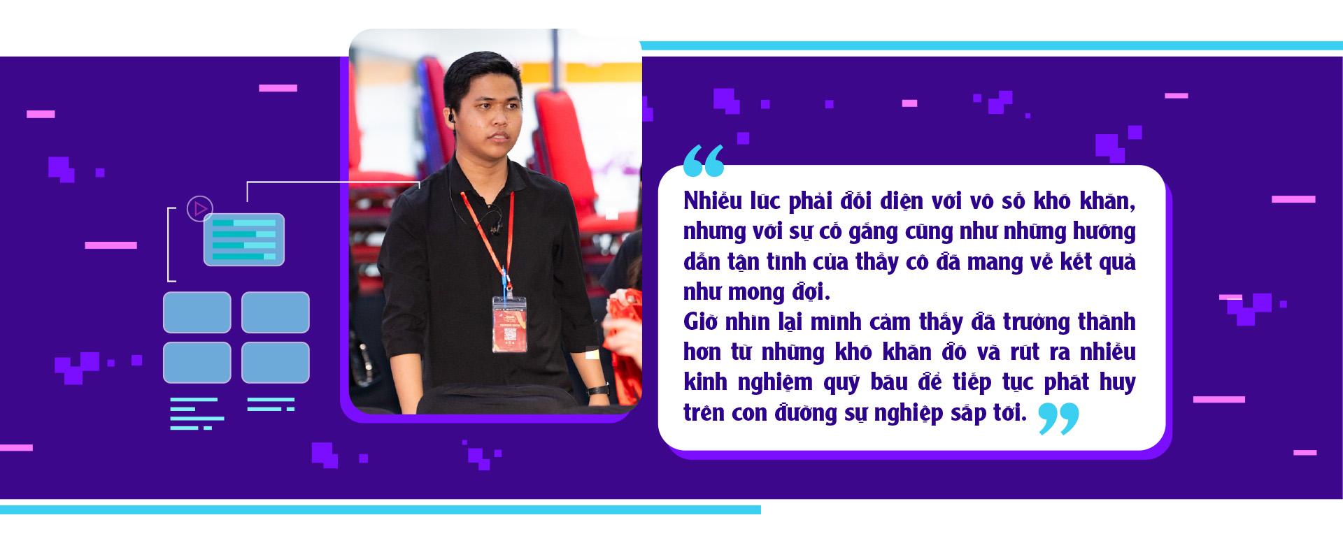 Phía sau mỗi đồ án sinh viên công phu chẳng khác gì sản phẩm ngoài thị trường là nhiều ngày lên ý tưởng, nghiên cứu và tìm phương án thực hiện, xây dựng nội dung, tổ chức sản xuất và vận hành, triển khai chiến dịch truyền thông - quảng bá, vận động tài trợ.