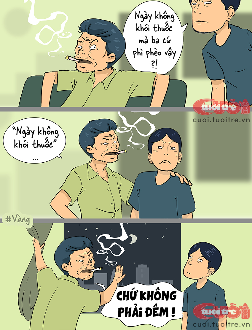 Ngày không khói thuốc mà ba cứ phì phèo vậy?