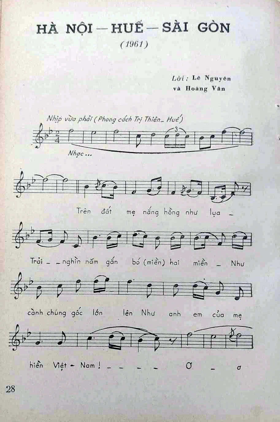 "Trên đất mẹ nắng hồng như lụa, trải nghìn năm gắn bó hai miền, như cành chung gốc lớn lên, như anh em của mẹ hiền Việt Nam. Huế cầm tay Sài Gòn Hà Nội...".