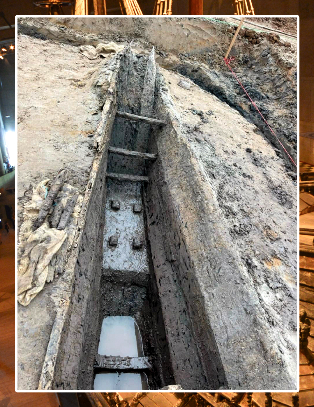Trên đó có thể là lầu nhỏ để vua quan đi thăm thú, hành lạc. Phía trên thuyền hiện nay không còn dấu vết gì. Người ta đang cố gắng xác định niên đại bằng cách thử C14 các mẫu gỗ, nghiên cứu địa chất đất bùn bám dưới đáy thuyền…