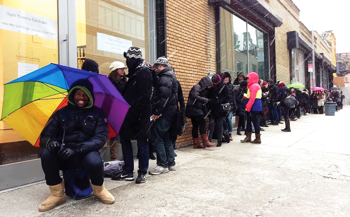 Việc nhiều buộc Samuel phải thuê gấp đôi nhân viên so với bình thường. Riêng tại sự kiện của The Row hồi cuối tháng 10, 61 nhân viên của Samuel đã chiếm 80 vị trí đầu tiên trong hàng đợi, nhờ bắt đầu từ nửa đêm.