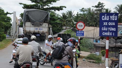 TTCT - Rất nhiều từ “đột phá”, “bức thiết”, “động lực”, “cửa ngõ chiến lược”... đã được dùng trong bản quy hoạch phát triển giao thông vận tải vùng kinh tế trọng điểm đồng bằng sông Cửu Long đến năm 2020, tầm nhìn 2030. Đối diện với nó đang là một thực tế vô cùng khó khăn của hạ tầng giao thông khu vực này, kèm theo muôn vàn hệ lụy cho giao thương, phát triển kinh tế - xã hội toàn vùng. Đường hẹp, cầu yếu Phóng to Cầu Vĩnh Xuân trên tuyến quốc lộ 54 thuộc Vĩnh Long - Ảnh: Đức Vịnh Trên đường từ Cần Thơ về Cà Mau theo tuyến quốc lộ (QL) 1A - xương sống của giao thông đồng bằng sông Cửu Long (ĐBSCL), chúng tôi không hề thấy bóng dáng một chiếc xe container nào. Điều gì đã khiến các doanh nghiệp ở ba tỉnh Sóc Trăng, Bạc Liêu và Cà Mau - “cái nôi” xuất khẩu tôm với hàng trăm ngàn tấn mỗi năm, thu về cho đất nước trên 1 tỉ USD - không thể làm lợi cho mình từ việc sử dụng loại xe container để vận chuyển hàng nhằm tiết kiệm chi phí? Cầu, đường đều rệu rã Hàng loạt cây cầu khác như Cần Thảo, Cái Dung, Cái Sao, Rạch Gòi Lớn, Tầm Bót, Cái Sơn trên quốc lộ 91 từ Cần Thơ đến cửa khẩu Tịnh Biên (An Giang) đều “già yếu”, rệu rã... Theo khảo sát mới đây của Khu Quản lý đường bộ 7, khu vực Nam bộ có 43 cây cầu yếu, trong đó chỉ riêng quốc lộ 91 có gần 20 cây cầu tải trọng chỉ 15-20 tấn, lại chung tình trạng hư hỏng nặng, thường xuyên phải sửa chữa định kỳ, mà mỗi lần sửa cầu là một lần ách tắc giao thông cả tuyến.Từ Cần Thơ đến huyện Vĩnh Lợi (Bạc Liêu) chỉ còn cầu Đất Sét thuộc tỉnh Hậu Giang đang thi công, phải đi bằng cầu tạm, đoạn còn lại cầu đường khá tốt. Tuy nhiên đến cầu Rạch Chuối thuộc địa bàn huyện Hòa Bình, xe phải chạy chậm vì cầu hẹp, tải trọng chỉ cho phép 18 tấn. Cách đó không xa là cầu Cái Hưu cũng có tải trọng 18 tấn. Cầu Hộ Phòng thuộc huyện Giá Rai tải trọng còn tệ hơn, chỉ cho phép xe dưới 16 tấn đi qua. Toàn tuyến Cần Thơ - Cà Mau khoảng 170km hiện còn năm nút thắt về cầu mà giới xe tải không dám xé rào. Anh Thành Tài, tài xế xe tải nặng chạy tuyến này, cho biết đường bây giờ khá tốt, nhiều cầu mới xây không để tải trọng hạn chế nên xe tải nặng có thể chạy. Tuy nhiên vì vẫn còn vài cây cầu tải trọng 16 hoặc 18 tấn nên giới lái xe không dám chở vượt tải hoặc phải “né” lực lượng chức năng. Tuyến Quản Lộ - Phụng Hiệp từ thị xã Ngã Bảy (Hậu Giang) đi Cà Mau được kỳ vọng sẽ chia sẻ áp lực giao thông cho tuyến QL1A vì rút ngắn được khoảng cách 40km. Nhưng từ khi thông xe vào tháng 5-2011 đến nay, lượng xe đi lại tuyến này rất ít, chủ yếu là ôtô con. Xe tải và xe khách hoàn toàn không đi tuyến này vì cầu chỉ cho phép xe dưới 18 tấn, mặt đường lại chi chít sóng lươn ở những khu vực có cống hộp đi ngang do bị lún nặng. Tuyến đường Nam sông Hậu (91C) nối Cần Thơ - Bạc Liêu cũng chẳng khá hơn, đường nhỏ hẹp, mặt đường nhiều nơi rất xấu. Từ QL1A về các tỉnh Đồng Tháp, An Giang, Kiên Giang và hai quận Thốt Nốt, Vĩnh Thạnh của TP Cần Thơ phải qua QL80 với nhiều cây cầu cũ nhỏ hẹp, tải trọng thấp. Đoạn từ bến phà Mỹ Thuận đến cầu Vàm Cống dài gần 50km đã hoàn thành việc nâng cấp mở rộng từ lâu nhưng vẫn còn tới năm cây cầu cũ. Ông Nguyễn Khắc Quân - phó Ban quản lý các dự án giao thông 7 - cho biết những cầu này từng được cảnh báo về tình trạng xuống cấp nặng, tuy nhiên do chưa được phân bổ nguồn vốn nên chưa thể xây mới để thay thế. Xót ruột xé lẻ hàng hóa Anh Hoành Vinh, chủ doanh nghiệp vận tải Hoàng Vinh (Cà Mau), than thở: “Mọi thứ đều đang tăng giá, riêng giá xe thì không tăng được, chúng tôi ai cũng lao đao. Chỉ có cách chở nhiều hàng hóa mới bù đắp được chi phí vì vướng tải trọng các cây cầu trên tuyến QL1”. Gần đây, công ty của anh chở thủy hải sản xuất khẩu cho một số công ty ở Cà Mau, lượng hàng trên mỗi chuyến xe ít đi, đường xa và các loại phí phát sinh dọc đường khiến việc cạnh tranh ngày một khắc nghiệt. “Xe của tôi trọng tải cả hàng hóa là 24 tấn, nhưng cầu chỉ cho phép 16 tấn, làm sao tài xế dám chở? Đường Quản Lộ - Phụng Hiệp rút ngắn được 40km nhưng mới cắm bảng không cho xe trên 18 tấn lưu thông, mặt đường lại xấu, coi như chẳng giúp gì được việc vận chuyển hàng hóa của Cà Mau” - anh Vinh nói. Anh C.V.A., phó tổng giám đốc một tập đoàn thủy sản lớn tại Cà Mau, cho biết mỗi ngày công ty có đến 70 xe đông lạnh chở hàng đi TP.HCM và các tỉnh thành khác, chi phí cho việc vận chuyển này rất lớn. Công ty anh dù có sẵn xe container nhưng không sử dụng được cho tuyến Cà Mau, phải điều xe chạy tuyến Hậu Giang. Theo anh A., mỗi xe tải chở chưa tới 10 tấn tôm đông lạnh, trong khi mỗi xe container có thể chở gấp 3-4 lần. “Chúng tôi rất muốn sử dụng đội xe containe