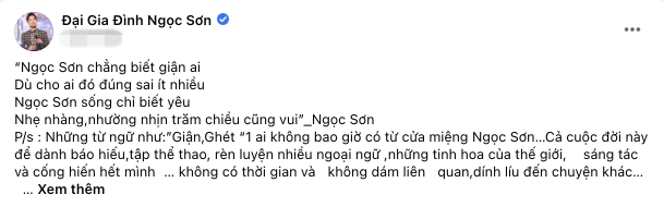 Cuối cùng, anh mong khán giả, những fan hâm mộ của mình hãy bình tĩnh trước những thông tin không đúng. Và nhắc nhở: "Cả nhà hãy bình tĩnh trước những tin không đúng, khi nào chính miệng Ngọc Sơn nói ra và tuyên bố thì mới là chính xác! Kính mong những yêu thương vào bình luận ôn hòa, không đả kích bất kỳ một ai nhé".