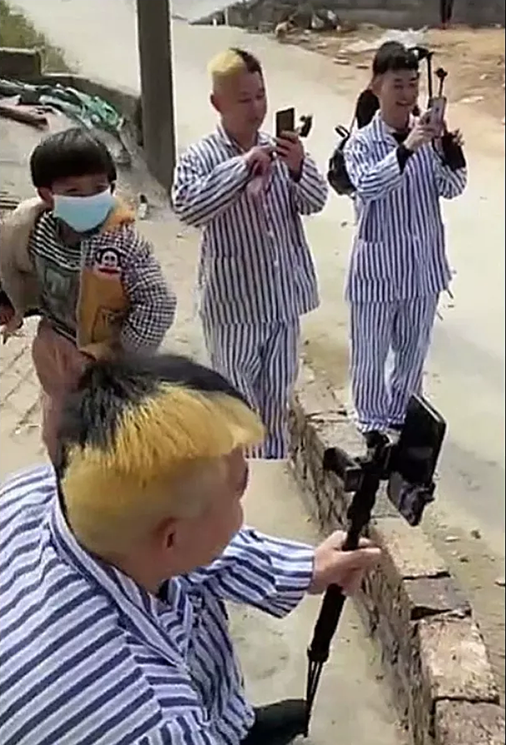 Tuy nhiên, "ngôi làng livestream" này đã... tiến hóa theo cách kỳ quặc hơn. Những thanh niên áo đỏ khi xưa trở thành "bệnh nhân" với mái tóc âm dương bên vàng - bên đen.