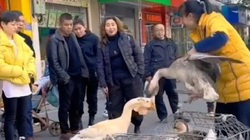 Thấy bạn đời bị chủ bắt, chú ngỗng chạy theo van xin. Nhìn cảnh này, người chủ đã quyết định không bán để chúng được bên nhau.