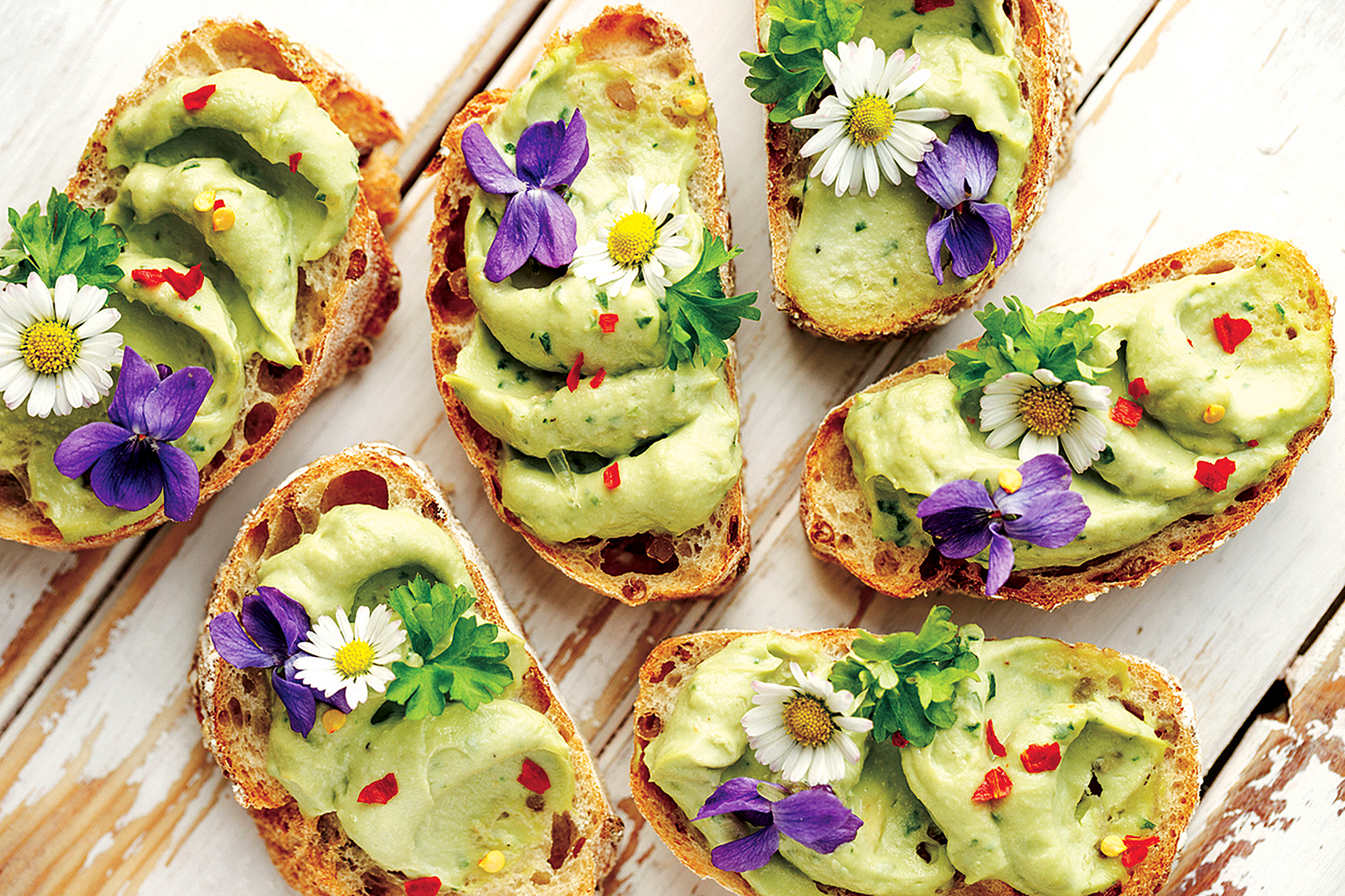 Theo Mireille, hầu hết các loại hoa đều được dùng sống, chỉ một số ít, như lá cây lưu ly, cúc vạn thọ, hoa sen cạn hoặc hoa dã quỳ, thì được nấu chín. Chúng được sử dụng trong cả món mặn và món ngọt, cánh hoa hồng và pansy có thể dễ dàng kết tinh bằng cách nhúng vào lòng trắng trứng, sau đó cho đường mịn và để khô để dùng làm đồ trang trí trên bánh.