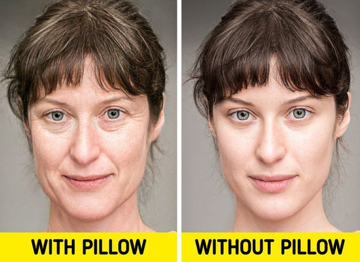 Làn da ngủ không gối (ảnh dưới) có thể làm giảm nếp nhăn. (Ảnh brightside).