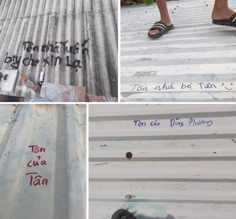 Người dân miền Trung thuê container, ghi tên lên tôn phòng bão số 9