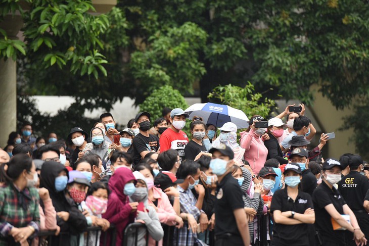 Người dân đội mưa tiễn linh cữu cố nghệ sĩ Chí Tài ra sân bay.