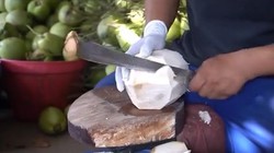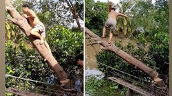 Người đàn ông được phen hú hồn hú vía khi chặt ngọn dừa bất ngờ bị cây bật lại suýt ngã xuống đất.