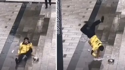 Người đàn ông ngồi ghế ngã ngửa xuống đường vội hít đất chống quê