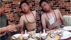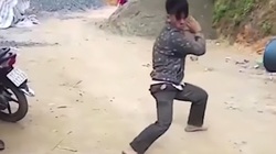 Người đàn ông say rượu đánh vật dưới ruộng nước