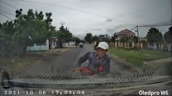 Người đàn ông say rượu tông văng thùng rác