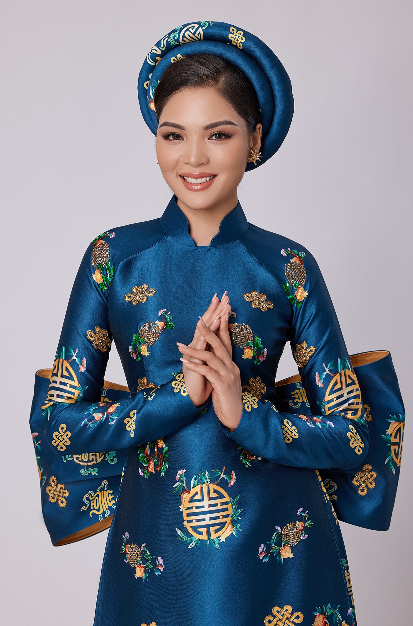 Bộ ảnh thời trang với các thiết kế áo dài trong bộ sưu tập Kim sắc niên hoa cũng là một trong số những hình ảnh chính thức mà Vân Anh gửi cho ban tổ chức Miss Earth 2021.