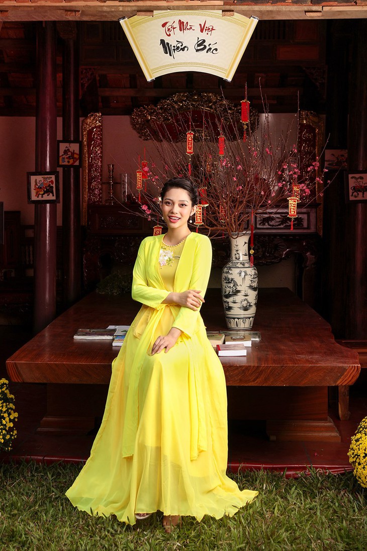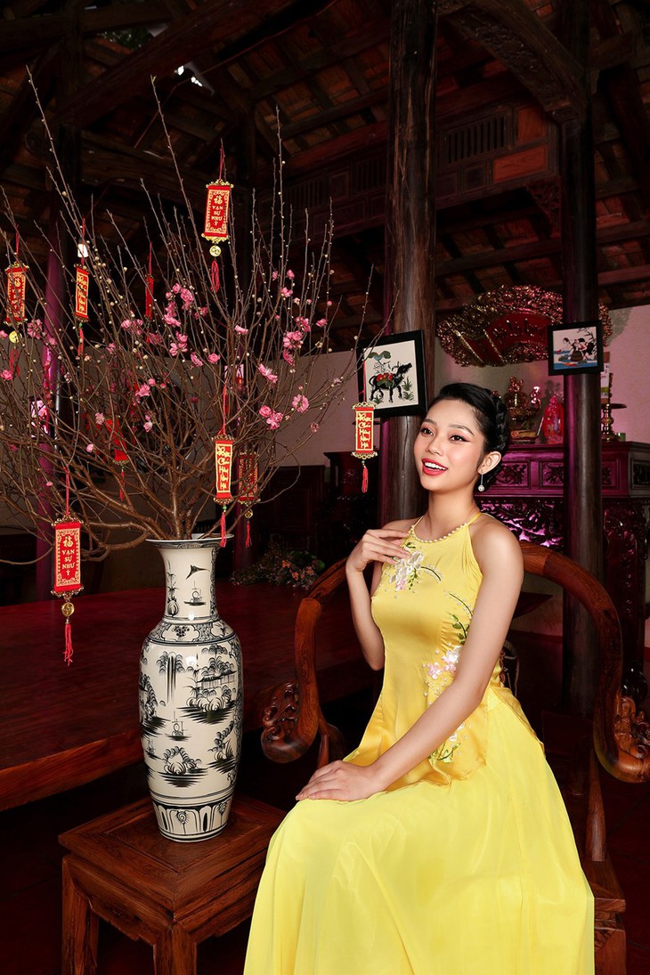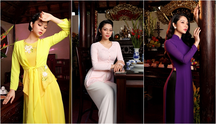 Thay vào đó, cô hi vọng mình sẽ có thể góp phần mang lại một chút tươi sáng, bình yên cho mọi người với bộ ảnh có concept độc đáo này: trang phục truyền thống ngày Xuân ba miền được thực hiện tại nhà ba gian Bắc - Trung - Nam dựng trong khuôn viên Lễ Hội Tết Việt 2021.