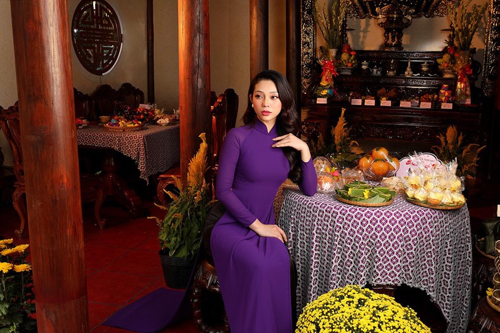 Với miền Nam, Lâm Thu Hồng khoác lên mình chiếc áo bà ba giản dị, đơn sơ nhưng cũng vô cùng tỏa sáng bên khay bánh mứt, bên đòn bánh Tét truyền thống của miền Tây.