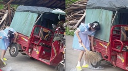 Người đi đường hú hồn với xe ba gác không người lái tự nổ máy di chuyển