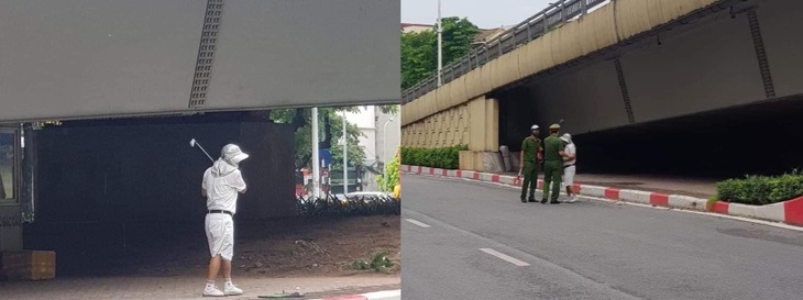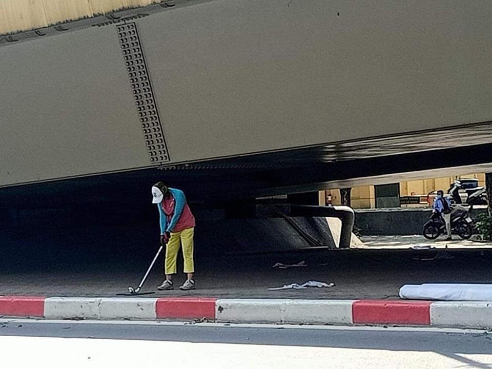 Người phụ nữ đánh golf dưới chân cầu vượt khi đang giãn cách XH