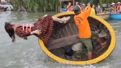 Vừa bước lên thuyền, chưa kịp cảm nhận vẻ đẹp thiên nhiên thì bất ngờ bị lật úp xuống sông.