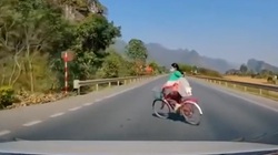 Người phụ nữ phóng xe máy sang đường như siêu nhân