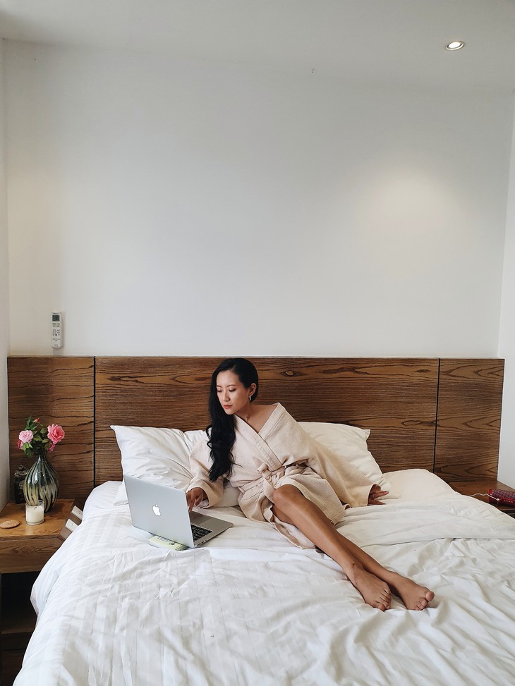 Tại chỗ "trú chân" mới, cô bạn lên ý tưởng để vừa vui vừa có được những tấm ảnh check in sang chảnh, chẳng thua bất kỳ một khung hình "sống ảo" tại resort nào. Cô cho biết: "Chuyến staycation này là món quà bạn mình tặng để tổ chức cho sinh nhật vừa qua.