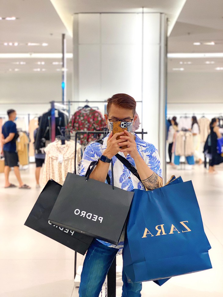 Hoài Trung thích thú khi được tận hưởng niềm vui mua sắm sau 5 tháng ở nhà. (Ảnh: NVCC)Khi biết được tin Zara, H&M mở cửa trở lại, anh chàng cảm thấy phấn khích tột cùng, nhanh chóng "lên đồ" để hòa vào dòng người trông ngóng ở Vincom (Quận 1). Trung cho biết: "Thời điểm này vẫn còn dịch, nên khách vào mua cũng được yêu cầu sát khuẩn, đeo khẩu trang và đo thân nhiệt.
