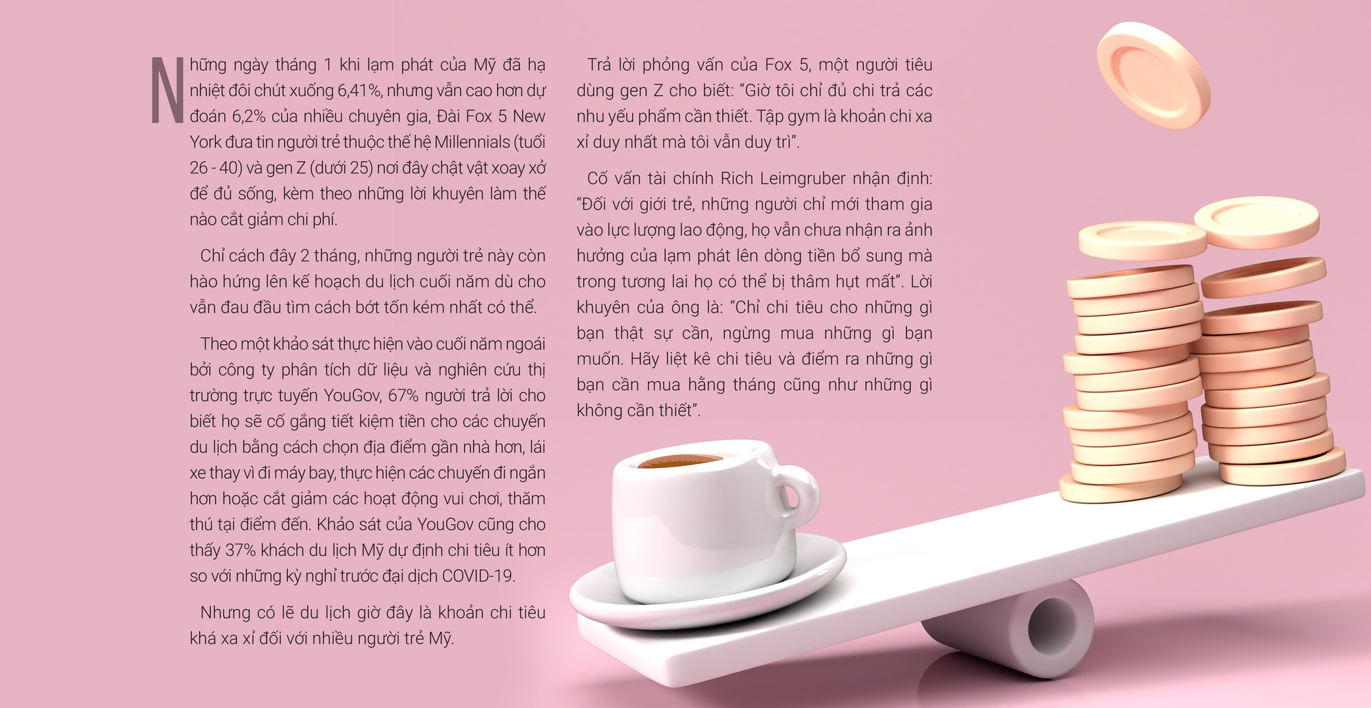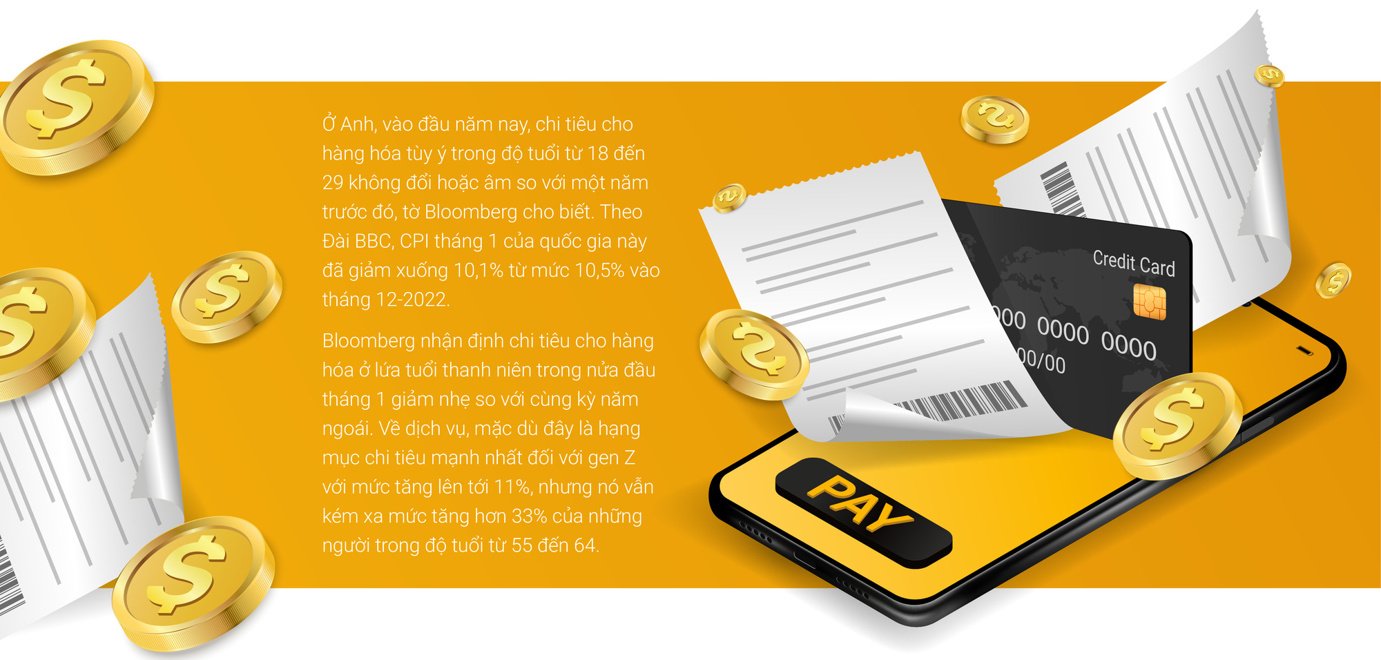 Khảo sát do PwC thực hiện trên 9.180 người tiêu dùng ở 25 quốc gia và vùng lãnh thổ vào tháng 12-2022 cho thấy 40% người thế hệ gen Z rất lo ngại về tình hình tài chính hiện tại của bản thân và có ý định thực hành tiết kiệm chi phí trong 6 tháng tới. Tỉ lệ này ở lứa millennials thậm chí còn cao hơn - 43%.
