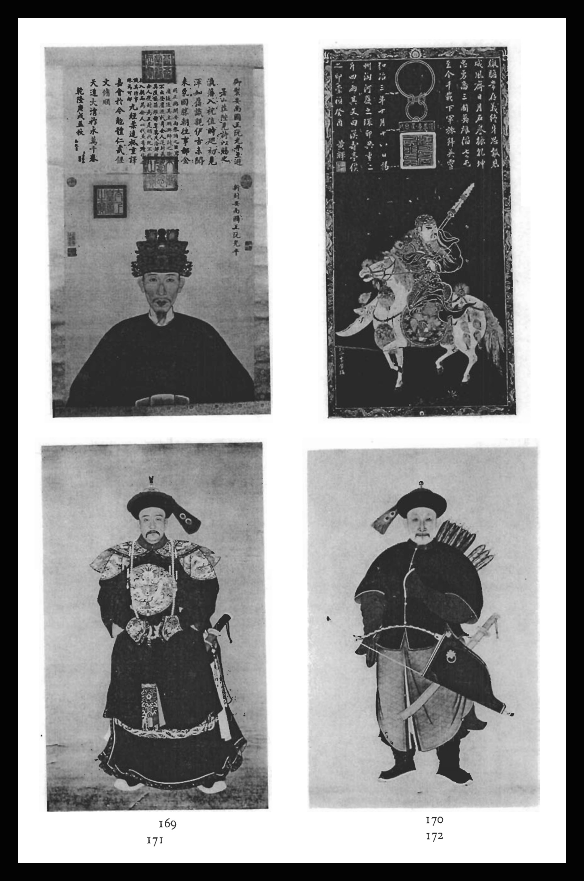 Hình vua Quang Trung (hàng trên, góc trái) do Nguyễn Duy Chính chụp lại từ Catalogue đấu giá của Sotheby’s tại Getty Research Institute (California, Hoa Kỳ) Nguyên văn chú thích: “169. Bức truyền thần bằng màu nước trên lụa vẽ vua nước An Nam mới được phong vương, Nguyễn Quang Bình, đội vương miện và áo bào đỏ trang trí hình rồng bằng vàng, cùng dòng niên đại 1790, kích thước tranh 39 inches x 22 inches (99cm x 56cm).”