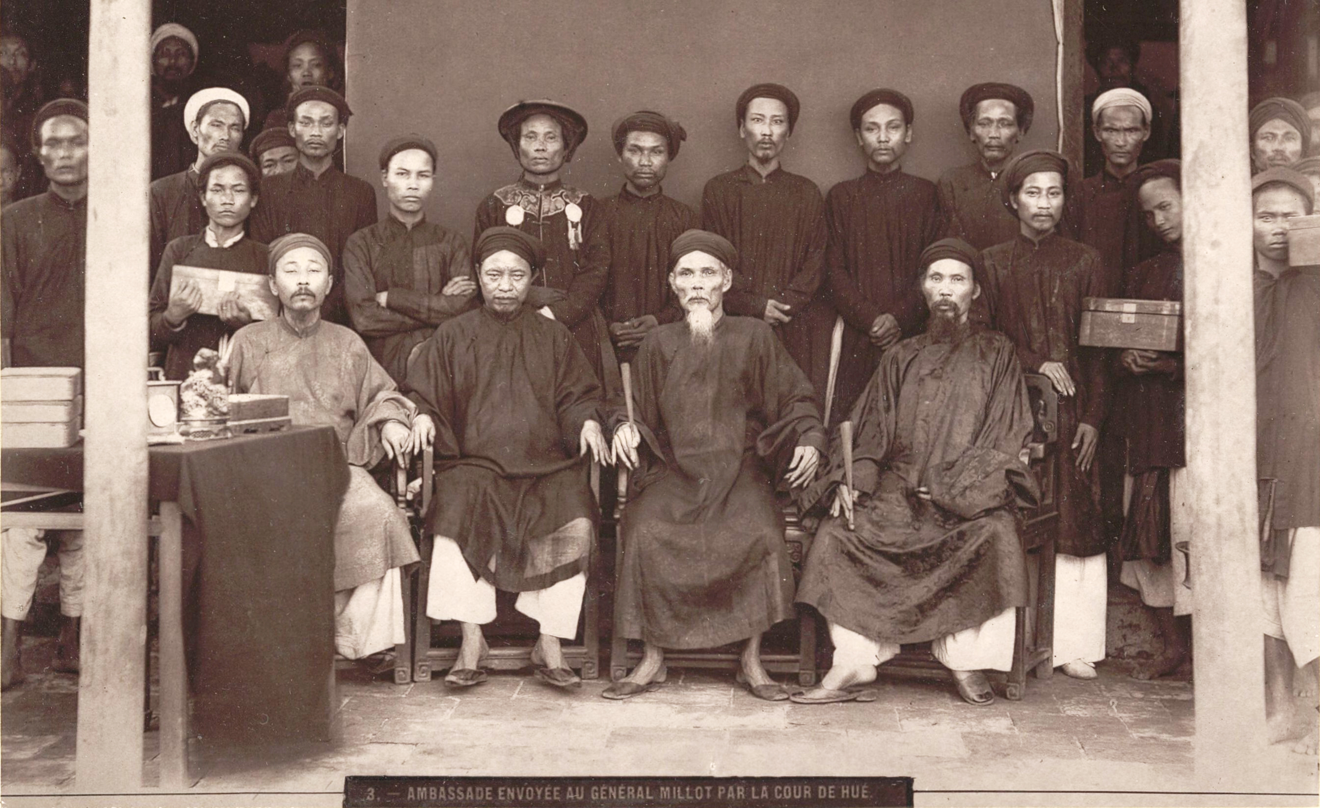 Sứ đoàn do vua Đại Nam phái đi gặp tướng Millot (Pháp) trong giai đoạn người Pháp thực hiện cuộc chiến dịch Bắc kỳ 1883-1885 Ảnh: Charles-Édouard Hocquard (1853-1911) Nguồn: Thư viện Quốc gia Pháp