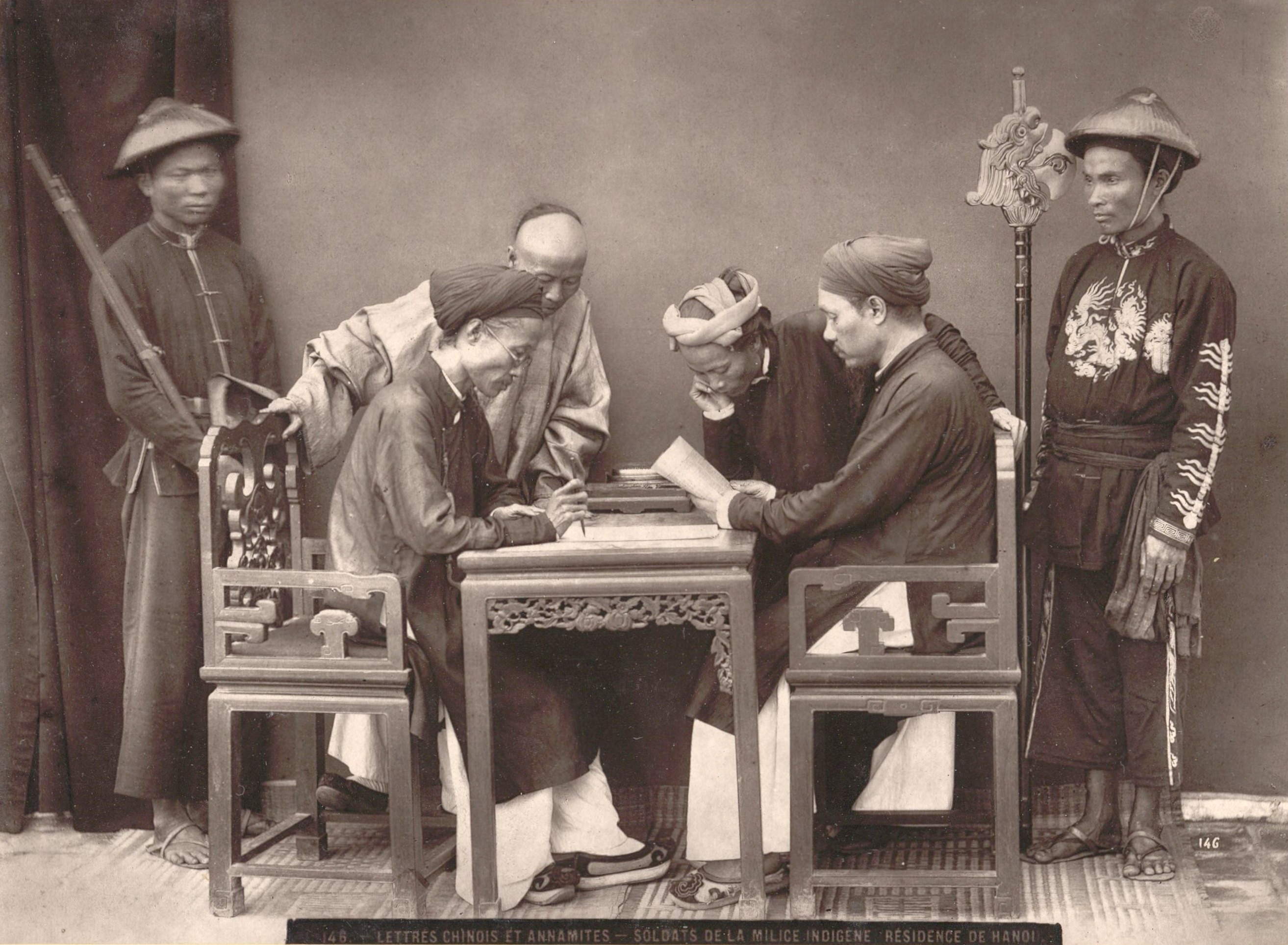 Các nhà nho làm thông dịch tại tòa Công sứ Hà Nội Ảnh: Charles-Édouard Hocquard (1853-1911) Nguồn: Thư viện Quốc gia Pháp