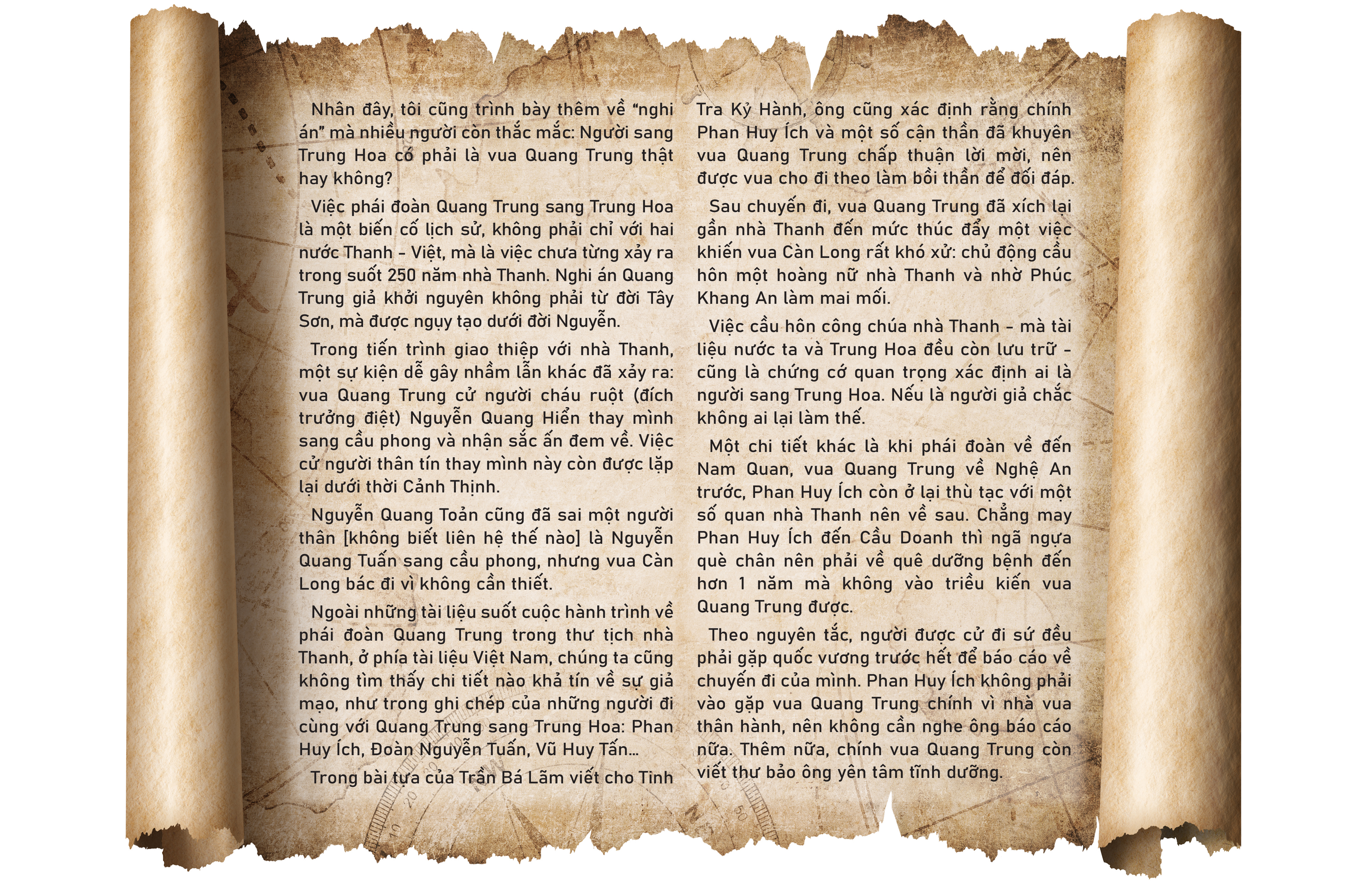 Từ vài chi tiết khá nhỏ nhoi, tôi đã có cơ hội tìm hiểu một "lâu đài quy mô" hơn nhiều. Đó là chính sách ngoại giao của Trung Hoa trong hệ thống tông phiên với đầy đủ bộ dạng tùng xòe của một con công khoe bộ cánh biếc. Khi nắm được cơ cấu và đường đi nước bước của nền hành chánh và chính trị nhà Thanh, việc nhìn lại lịch sử Việt Nam có nhiều lợi thế vì ít nhiều, chúng ta vẫn là một vệ tinh trong quỹ đạo tông phiên của họ.
