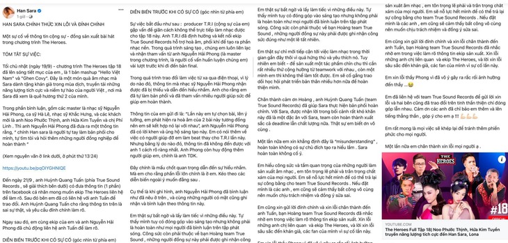 Sự việc được lan truyền nhanh chóng và bản thân Han Sara kịp thời lên tiếng đính chính sự việc để trấn an người hâm mộ cũng như tác giả bản phối Hello Việt Nam - Ghen Cô Vy. Tiếp sau đó, nhạc sĩ Nguyễn Hải Phong cũng thừa nhận sơ suất của mình và gửi lời xin lỗi đến các bên liên quan.