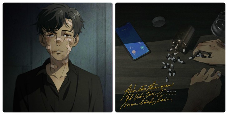 Trước đó, Nguyễn Trần Trung Quân cũng đã đăng phiên bản hoạt hình của tấm poster với chàng trai đang bật khóc cùng vô số vết thương trên người. Kèm theo đó là tấm poster phụ với hình ảnh lọ thuốc vương vãi trên bàn cùng với chiếc điện thoại đang reo.