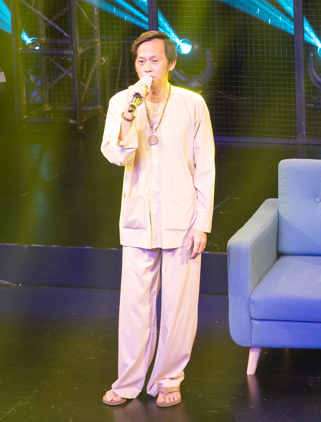 Trên sân khấu, nghệ sĩ Hoài Linh mặc bộ đồ bà ba màu nâu nhạt, đi đôi dép lê đã cũ mòn nhưng vẫn chiếm trọn tình cảm của khán giả với giọng đọc truyền cảm, xúc động: