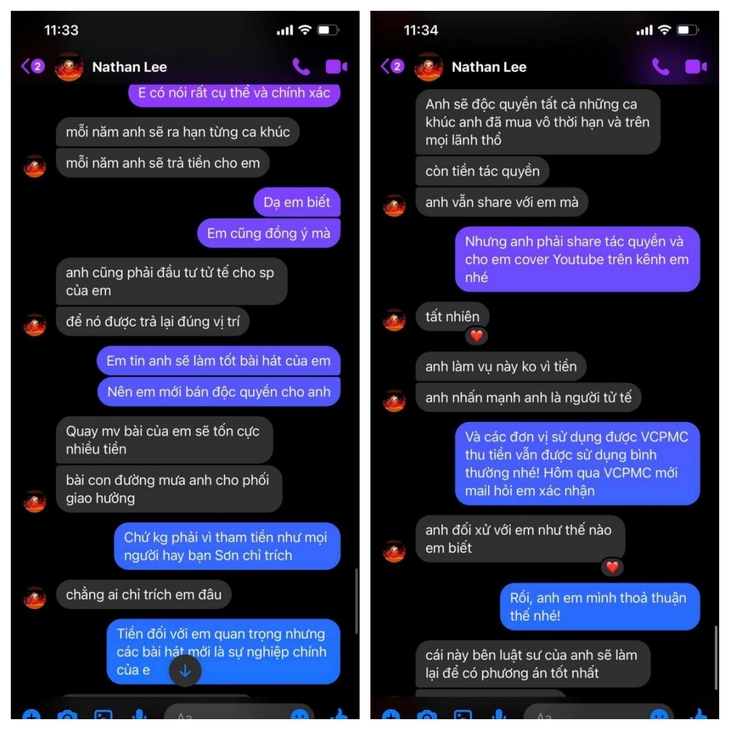 Đến trưa 26-5, Nguyễn Văn Chung đã chính thức công bố đoạn tin nhắn với Nathan Lee và đưa ra bằng chứng chứng minh việc bán ca khúc không vì mục đích "đổ thêm dầu vào lửa" trong câu chuyện xích mích giữa hai nam ca sĩ đình đám.