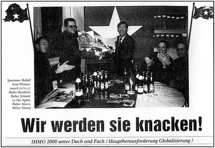 Lần khác, anh đại diện Báo Tuổi Trẻ sang Dubai (UEA) dự Triển lãm Biếm họa báo chí thế giới, mang theo tranh của 4 họa sĩ biếm: Nhím, NOP, Nhốp, DAD để trưng bày. Khi về VN, anh tặng tôi vựng tập Triển lãm có đăng tranh của tôi và nói: “Mày hên nha. Có mỗi tranh của mày được chọn đăng đại diện của Việt Nam”. Tôi nói: “Ủa BGK tuyển chọn theo tiêu chí, chứ hên xui gì ta!”. Nhưng trong lòng cũng thầm cám ơn anh đã mang tranh của tôi giới thiệu ở nước ngoài. Mà cũng hên thật, khi sau đó các Tổ chức biếm họa quốc tế thường xuyên hàng năm gửi thư mời tôi tham dự các cuộc triển lãm biếm họa thế giới...