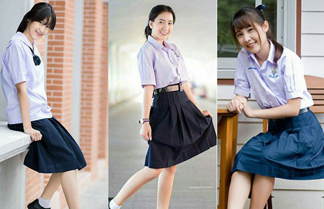 Nữ sinh Thái gắn bó với mẫu đồng phục váy xanh (đậm hoặc nhạt) áo trắng đã hơn 100 năm nay.Tại các ngôi trường xứ Chùa Vàng, các quy định về trang phục cũng như kiểu tóc, giày dép, tất... khi đến trường được thực hiện rất quy củ và nề nếp. Thậm chí, độ dài của váy luôn được yêu cầu không quá ngắn, trên dưới đầu gối chỉ khoảng 5cm. Trong khi đó, nam sinh lẫn nữ sinh đều có những quy tắc riêng biệt về chiều dài tóc và các hình thức uốn, nhuộm đều không được phép.