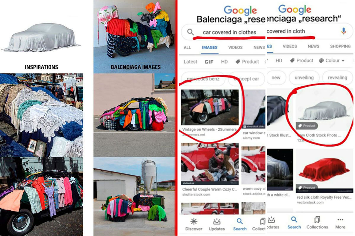 Nhà thiết kế Việt cũng chỉ ra 2 trong số những bức hình nhà mốt Balenciaga đăng lên Instagram làm bằng chứng rằng "lấy ý tưởng từ những người bán hàng rong treo hàng lên xe" để phản pháo lại Trà My, đều lấy "rất hời hợt" từ trang đầu tiên trong kết quả tìm kiếm trên Google.