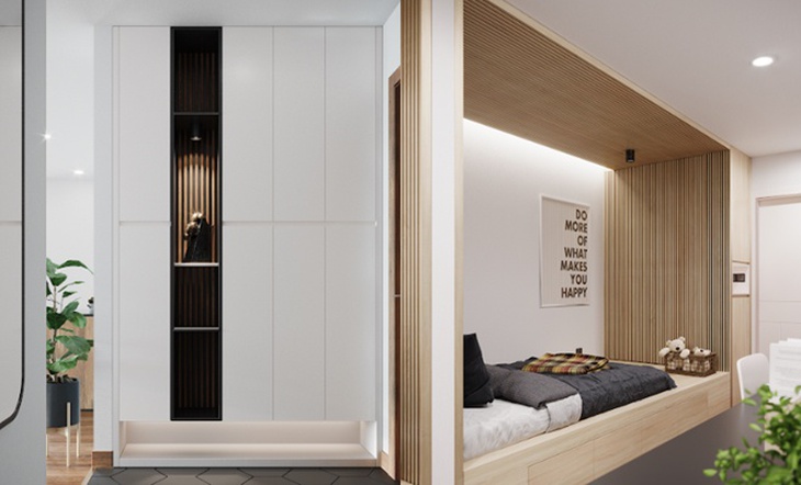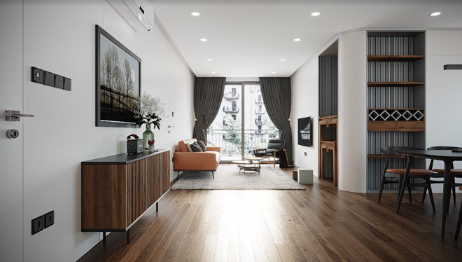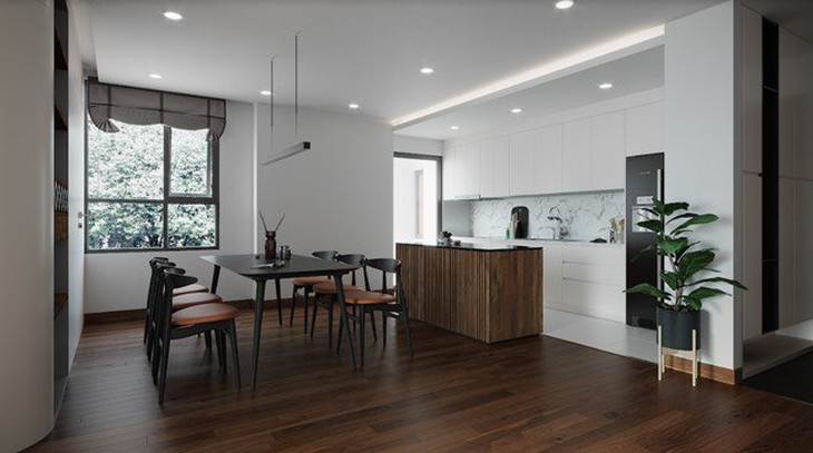 Cách xử lý này vừa tạo ra một khoảng không gian xuyên suốt, mạch lạc, vừa mang lại sự liên lạc dễ dàng hơn giữa các thành viên trong gia đình, khiến căn hộ trở nên ấm cúng, thoải mái cho người sử dụng.
