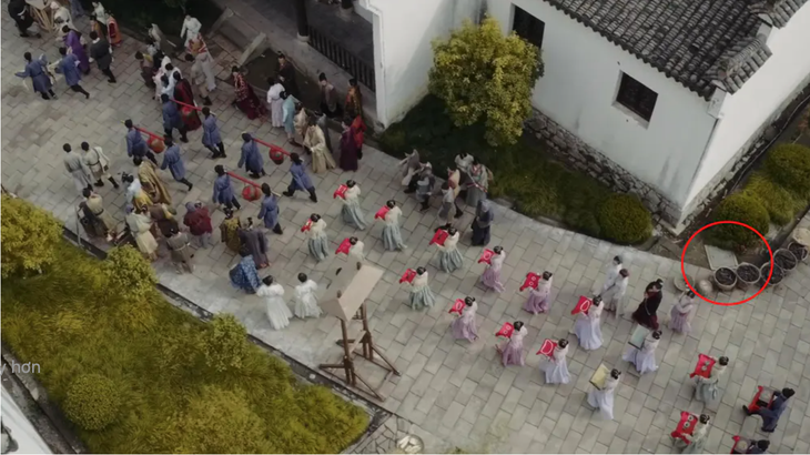 Trong tập đầu tiên của 'Minh Lan truyện', khi đoàn rước dâu đi ngang qua con phố, nếu để ý khán giả sẽ phát hiện một nắp cống thoát nước. Điều này có vẻ vô lý trong một bộ phim cổ trang từ hàng ngàn năm trước.