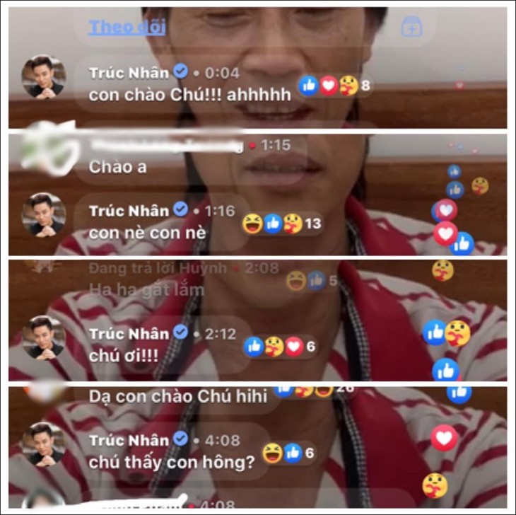 Mới đây, Trúc Nhân có chia sẻ dòng trạng thái bày tỏ sự trớ trêu trước tinh thần "đu" idol của mình bị thất bại thê thảm. Số là khi Hoài Linh livestream, Trúc Nhân nhiệt tình vào xem và liên tục hú hét tên của tiền bối để cho biết mình đang xem rất cuồng nhiệt. Thế nhưng, dù Trúc Nhân gào khản cổ, viết mỏi tay thì danh hài Hoài Linh vẫn lơ đẹp.