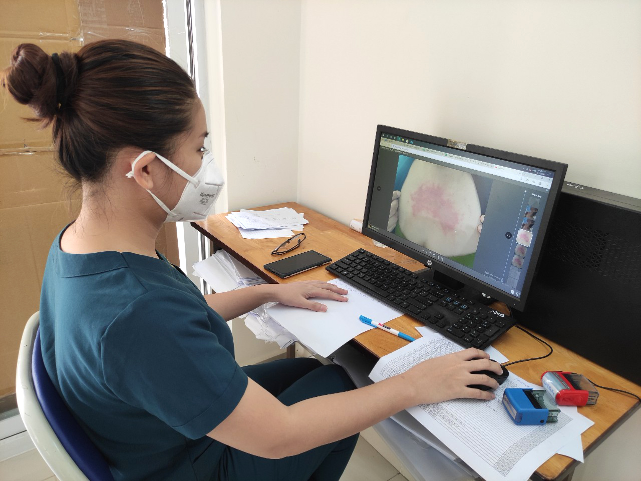 Ngoài những bệnh nhân COVID-19, gần đây, đường dây tư vấn trực tuyến qua Zalo mùa dịch của bệnh viện này tiếp nhận nhiều trường hợp người dân bị viêm da tiếp xúc do kiến ba khoang.