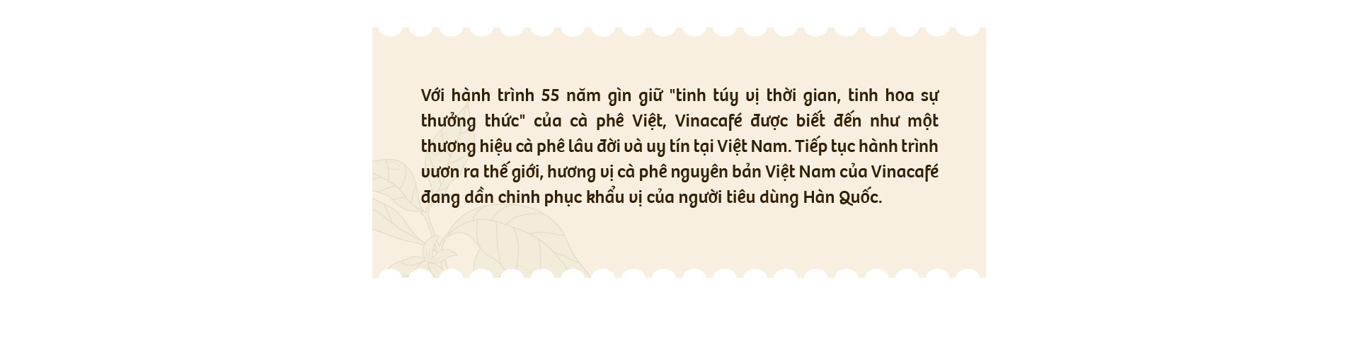 Nhìn lại bước đầu thành công cho sự hiện diện tại Hàn Quốc vừa qua, Vinacafé cho thấy bước chuyển mình rõ rệt và tầm nhìn dài hạn khi từng bước đưa hương vị cà phê Việt tới người dân xứ sở kim chi cũng như đến gần hơn với bạn bè quốc tế.