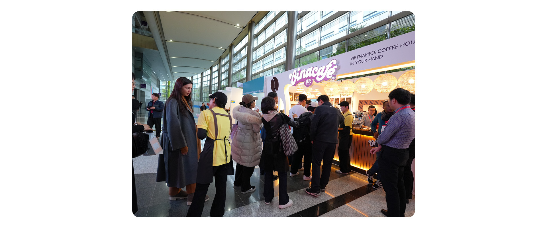 Với thông điệp "Vietnamese coffee house in your hand", Vinacafé đã mang đến Hàn Quốc một không gian cà phê thân thuộc, gần gũi qua cách bài trí gian hàng, trưng bày và giới thiệu sản phẩm.