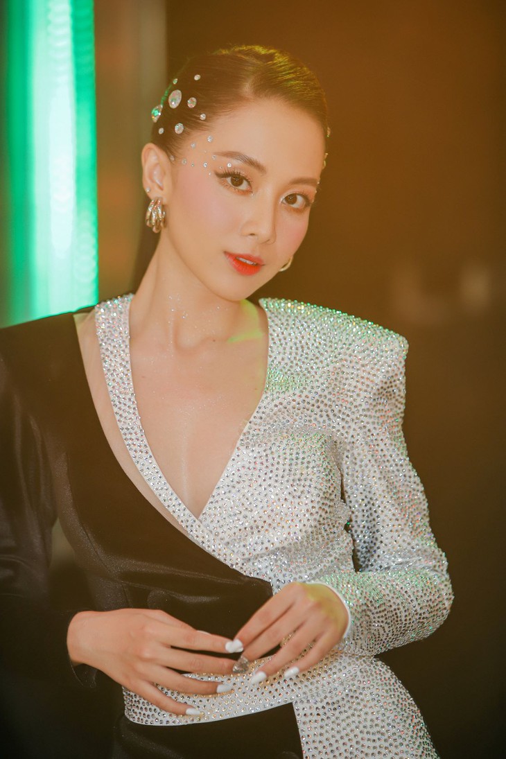 Chẳng hạn như trong đêm chung kết vừa rồi, để phù hợp với một đêm thi tìm ra Quán quân và khép lại mùa đầu tiên, Tuyền Tăng chọn thiết kế mang màu sắc đối lập, phối cùng boots cao cổ. Layout make-up của nữ MC cũng đậm màu sắc lễ hội với những điểm nhấn trên mái tóc.