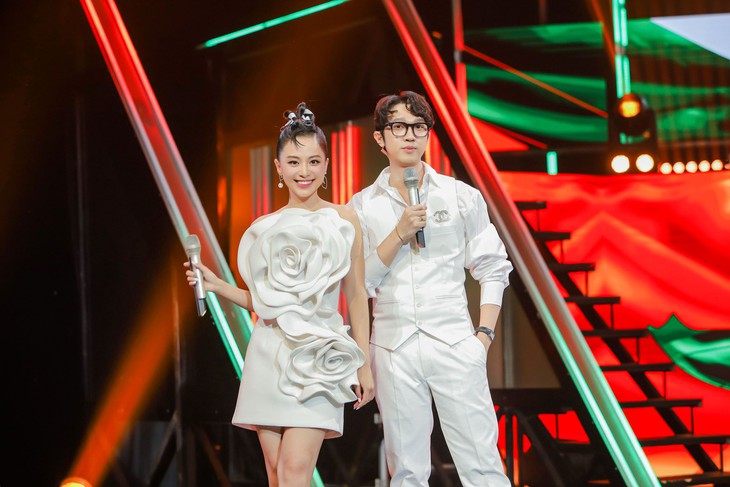 Nếu để ý, những outfit của Tuyền Tăng luôn có sự hài hòa với bạn dẫn. Đó nhất thiết không phải những trang phục ton-sur-ton nhưng sẽ phù hợp để không tạo nên cảm giác “mỗi người một nơi”, không ăn nhập gì với nhau khi khán giả nhìn vào cặp MC của chương trình.