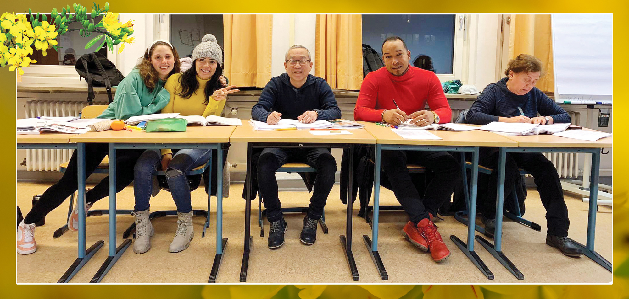 Chúng tôi học tiếng Đức hội nhập khi mới sang như mọi người khác. Riêng tôi muốn học tiếng Đức vì tin rằng biết tiếng mới tìm được một việc làm tốt.