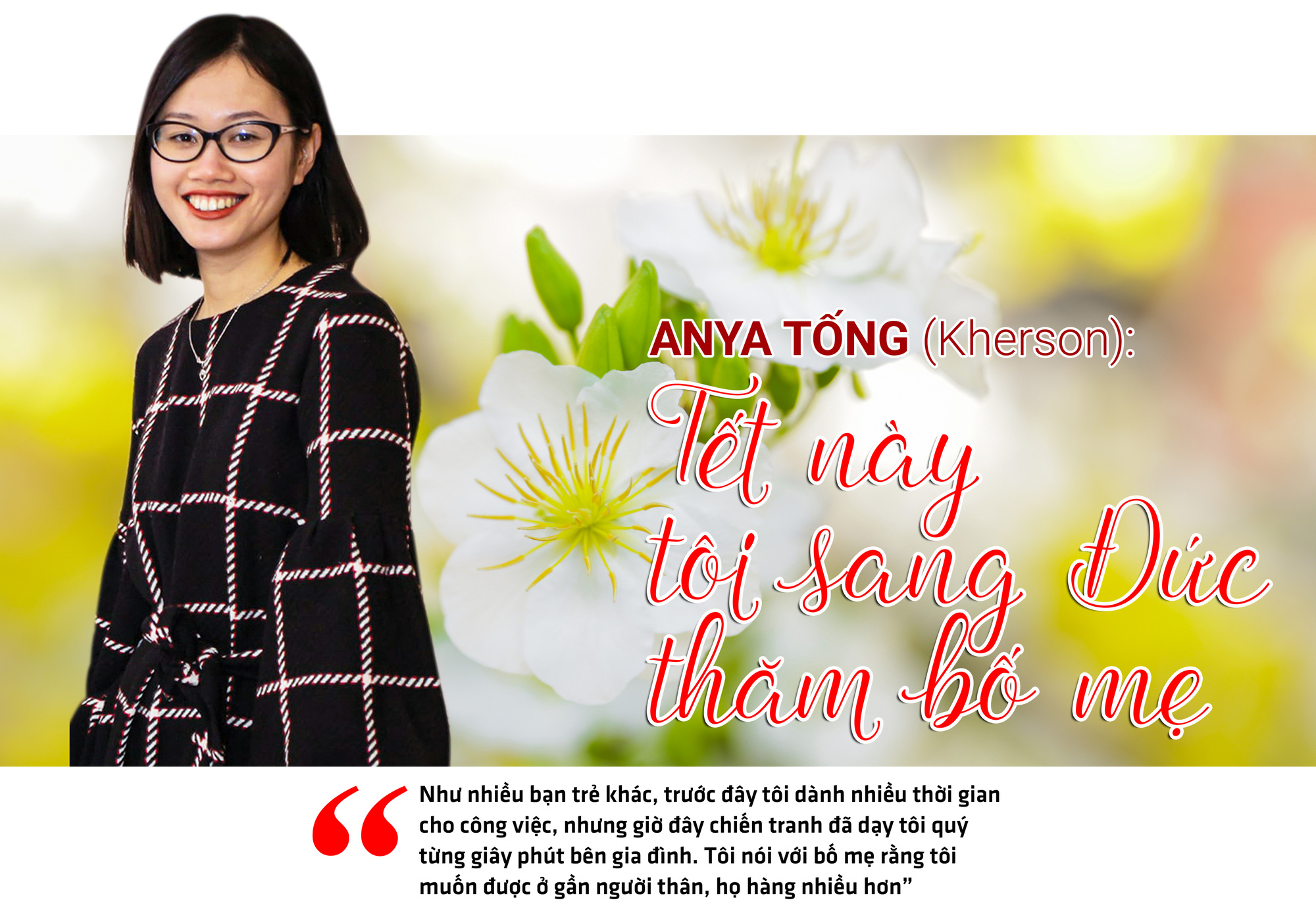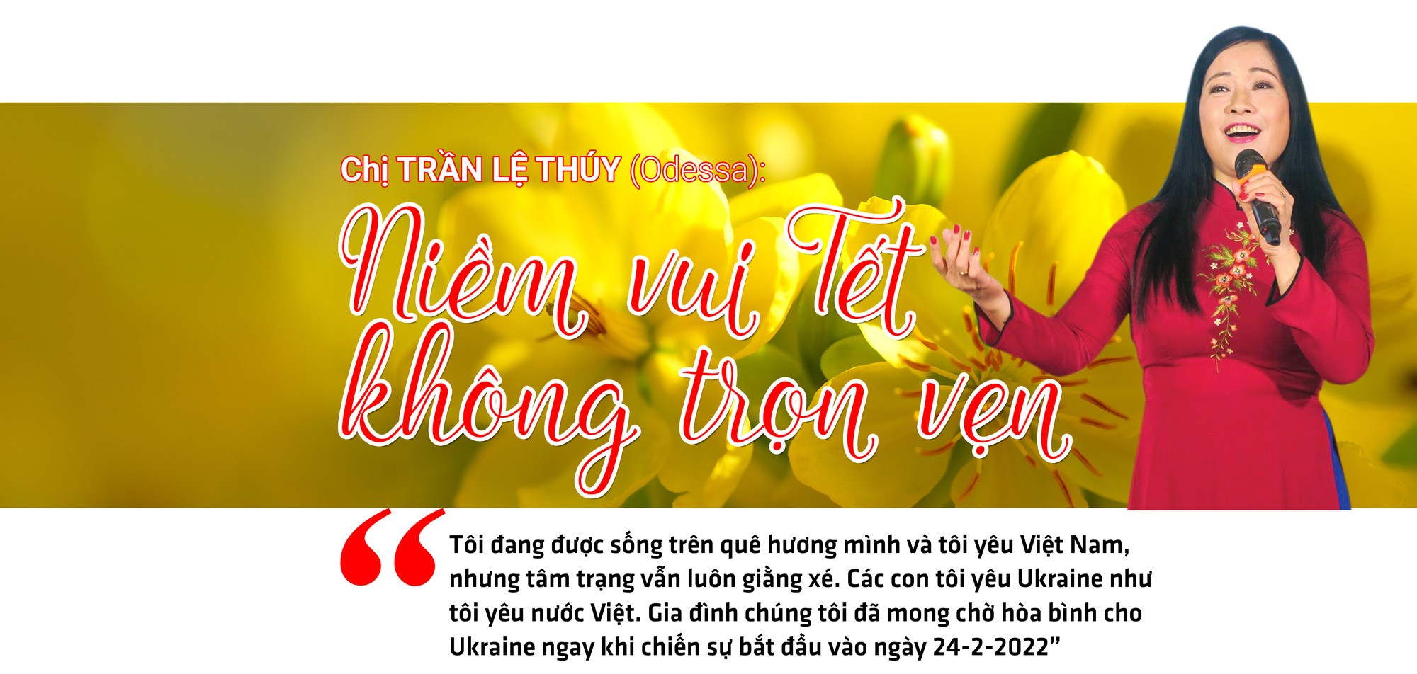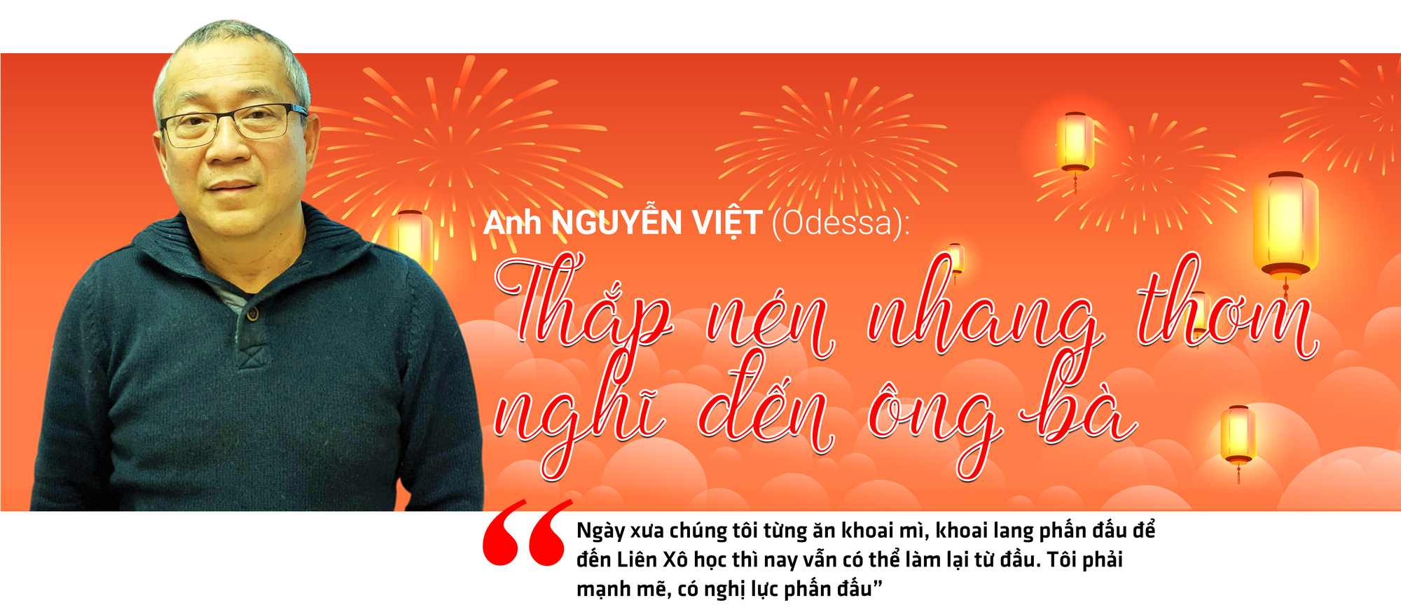 Con đang sống một mình ở nơi bom đạn nên vợ chồng chúng tôi không có tâm trạng nào mà nghĩ đến Tết, chỉ mong Ukraine mau bình yên để được yên tâm về con và được trở lại quê hương thứ hai của mình. Cũng như chúng tôi, con nói không có tâm trạng nghĩ về ngày Tết - Tết sẽ là ngày bom đạn ngừng rơi trên đất Ukraine.